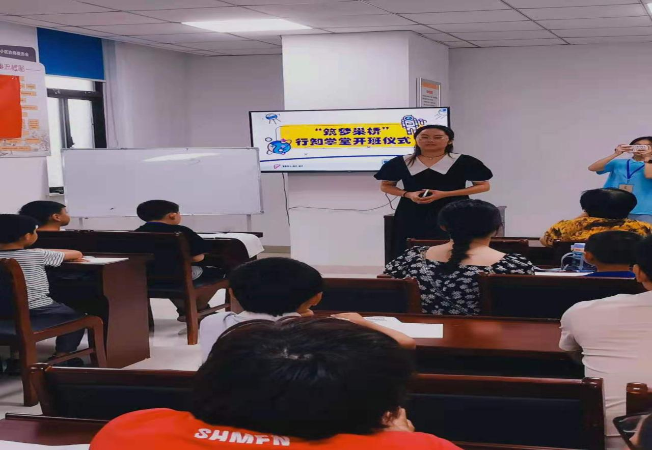 为传承红色基因,服务留守儿童,共筑青春梦想,7月7日上午,今年会jinnianhui“筑梦巢桥”行知学堂在合肥市巢桥居委会正式开班。巢桥社区居委会副主任周玥、行知学堂指导老师吴梦云、7名行知学堂“小先生”以及近30名小学生及家长参加了开班仪式。