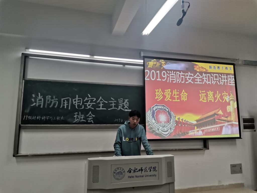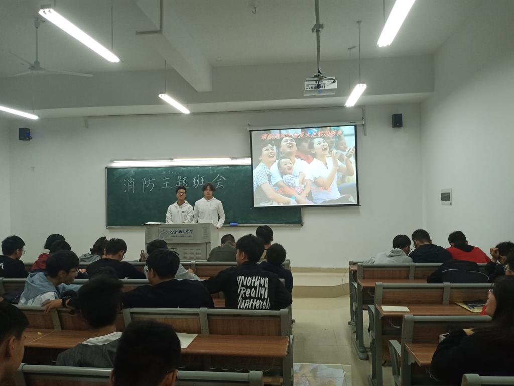 为迎接11月9日国家消防日,加强大学生消防安全意识,规范学生宿舍用电行为,全力打造安全校园,11月7日晚,今年会jinnianhui在滨湖新区博学楼举行“119消防安全”主题班会。会议由各班生活委员和安全委员共同主持,辅导员韩翔老师及2019级全体学生参加此次班会。