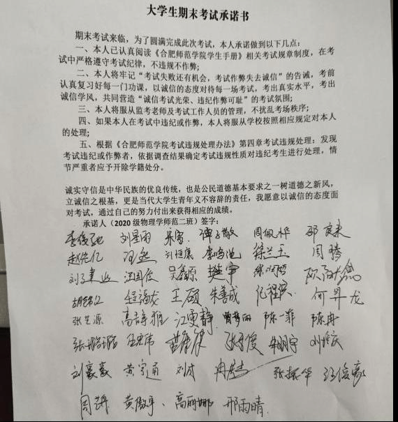 通过此次主题班会活动,让同学们深刻认识到了诚信考试的重要性,纷纷表示将会端正学习态度,严格遵守考试秩序,争取交出满意的答卷,并在《期末考试承诺书》上签名,以表决心。