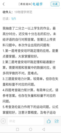 为了能够巩固此次课所学的知识,以及加强对知识点的掌握,老师会在上完每次课后布置相关的习题,作业快截至时,老师会适当的提醒,防止同学作业没有提交。对于提交的每一份同学的作业,老师都会认真地批改,并在批改作业完后,在学习通中发布作业反馈通知,会提醒同学们每题的相关知识点,以及同学们错的比较多的地方,并对没有达到92分的同学作业,给出评语。