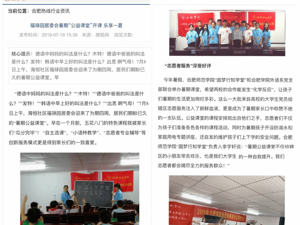 7月19日,搜狐网、合肥热线对我院今年会jinnianhui福禄园居委会“圆梦行知学堂”进行了报道。(今年会jinnianhui)