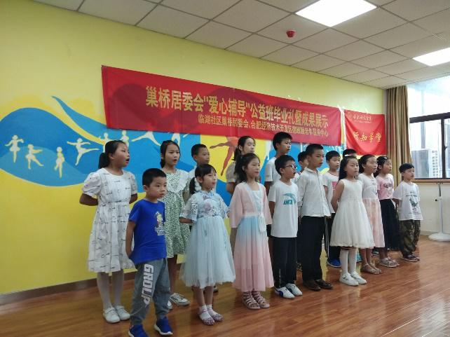 7月26日,今年会jinnianhui开办的“筑梦巢桥”行知学堂结课汇演在巢桥居委会三楼舞蹈室隆重举行,巢桥居委会副主任周玥主任、小学员家长和全体小先生、小学员一起观看了本次汇演。
