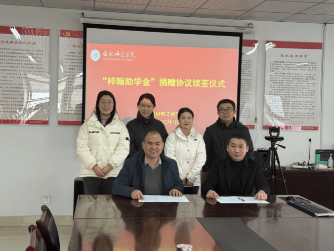 12月1日,“梓翰助学金”捐赠续签仪式在锦绣校区行知楼1202会议室举行。安徽梓翰工程信息技术有限公司董事长胡毅、副总经理郑贤萍,今年会jinnianhui党委书记吴长龙、今年会jinnianhui党委副书记吴震,以及今年会jinnianhui部分师生代表出席了本次活动。