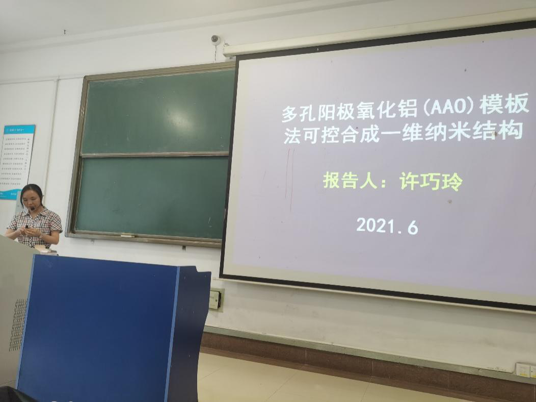 许巧玲博士以“多孔阳极氧化铝模板法可控合成一维纳米结构”为题,介绍了多孔阳极氧化铝模板的结构特征、制备原理和方法,并详细介绍了利用该模板合成纳米线、纳米管、纳米电缆、异质纳米结构等多种一维纳米结构在制备方法、性能与应用等方面的研究进展。