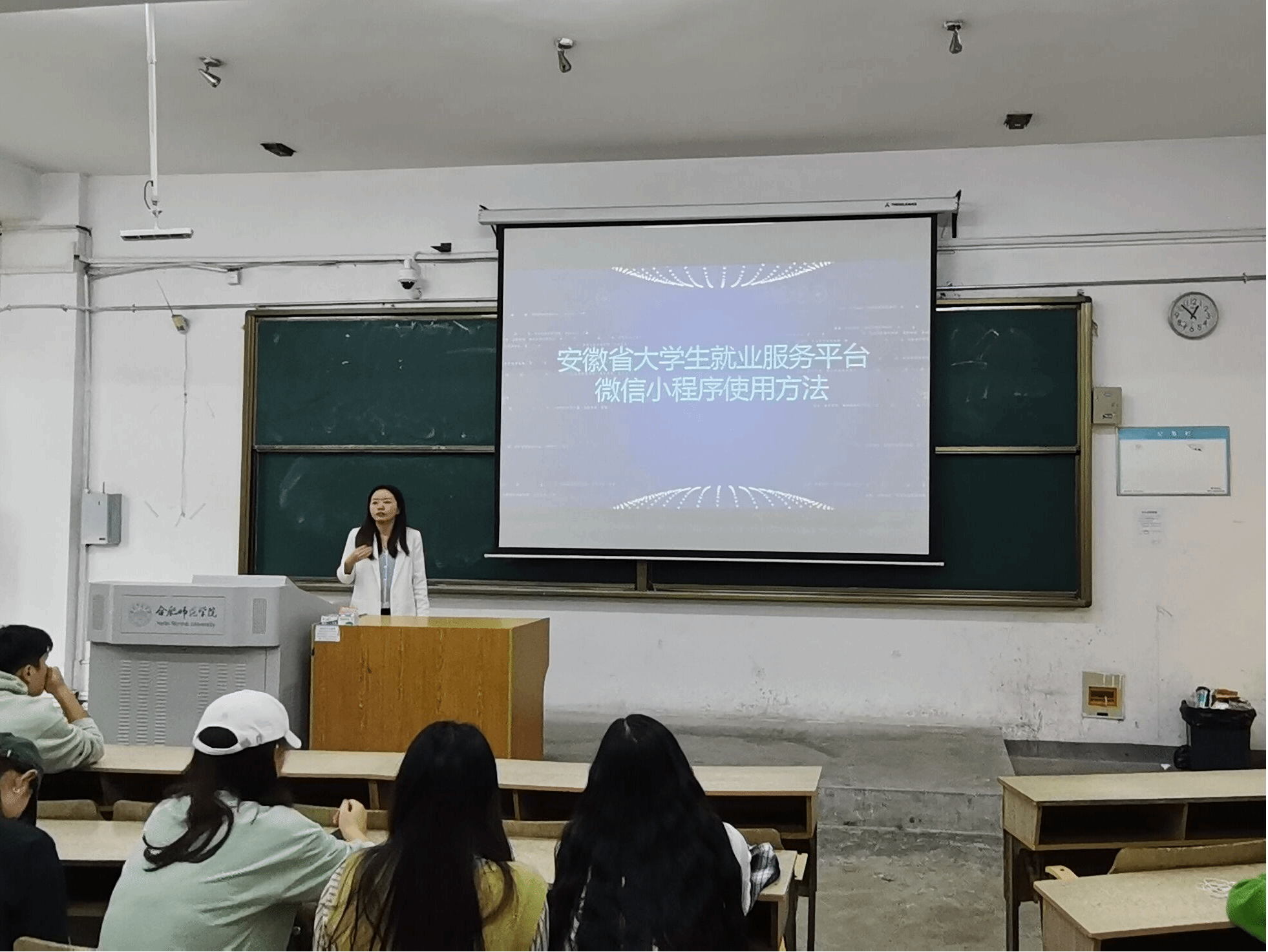 会上,张玲俐向同学们演示了安徽省大学生就业服务平台微信小程序的使用方法,详细说明毕业生个人信息确认、生源地信息核对、电子简历维护以及毕业生就业网签的操作步骤和注意事项,并现场指导学生完成相关操作。同时根据《关于做好2024届毕业生求职创业补贴信息化发放工作的通知》要求,介绍了毕业生求职创业补贴的补贴对象、申领流程和时间节点,动员符合申领条件的同学们在规定时间完成线上申请。