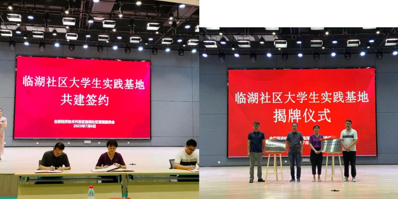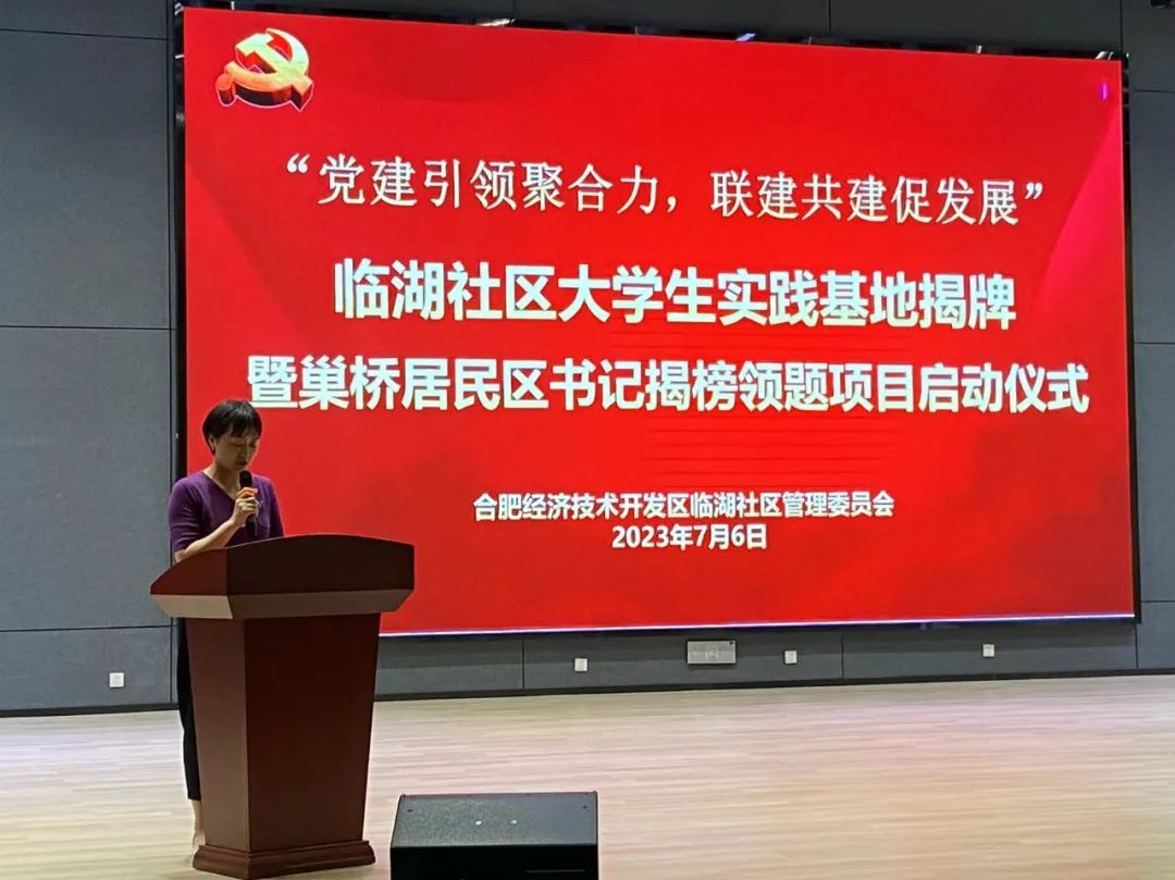 临湖社区党群服务中心主任周燕为仪式致辞,强调此次大学生社会实践基地揭牌是学校和社区基层合作共建,助力基层治理的重要载体,有利于发挥各自优势,推进的双向互动良好格局。今年会今年会jinnianhui团委书记费文清、指导教师张玲俐,临湖社区党委副书记孟海峰、临湖社区党群服务中心主任周燕出席揭牌仪式,并签约大学生社会实践基地合作共建协议。