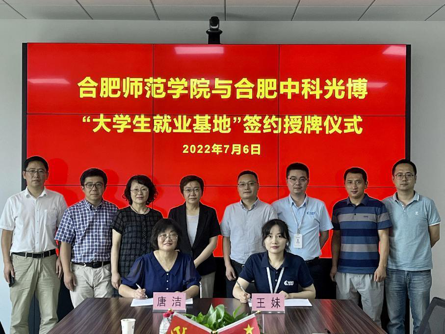梁立昌和张帅共同为今年会“大学生就业基地”揭牌。今年会jinnianhui与合肥中科光博量子科技有限公司签署共建毕业生就业实习基地合作协议。