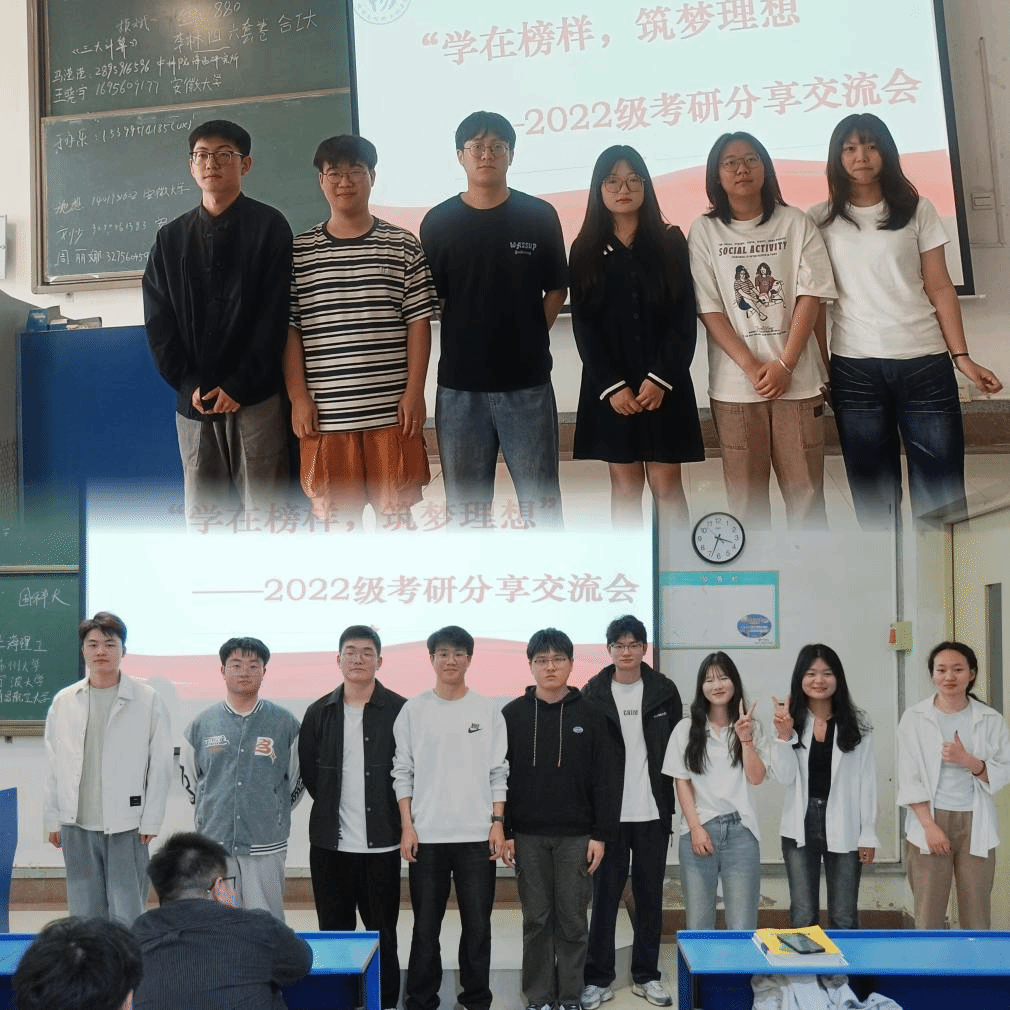 会上,14位成功考取合肥工业大学、南京理工大学、中国科学院大学等高校的学长学姐结合自身经历,从不同角度分享备考经验。于永乐以初试高分经验为例,详细拆解数学、英语复习方法,推荐实用备考资料;杜官正则重点介绍如何选择院校,分享其参与夏令营的经验,提醒同学们关注院校前沿动态。在现场交流环节中,同学们积极踊跃、争先提问,学长学姐们细心认真地一一进行讲解和指导。