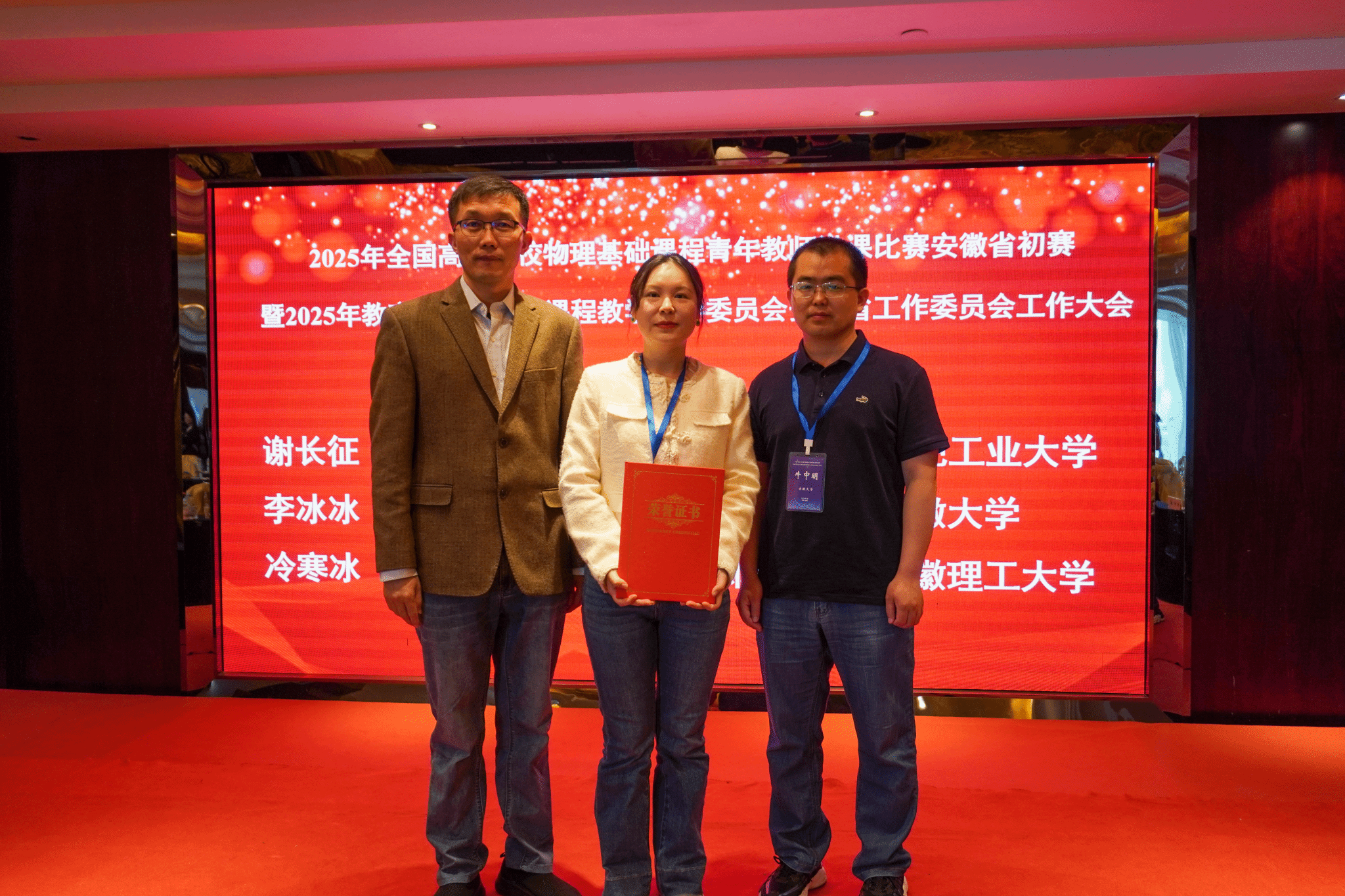 在5月8日至10日举办的2025年全国高等学校物理基础课程青年教师讲课(安徽赛区)比赛中,代表今年会参赛的今年会jinnianhui谢长征老师以精湛的教学技艺和创新的教学设计,从来自中国科学技术大学、合肥工业大学等省内20所高校的参赛教师中脱颖而出,斩获一等奖第一名。