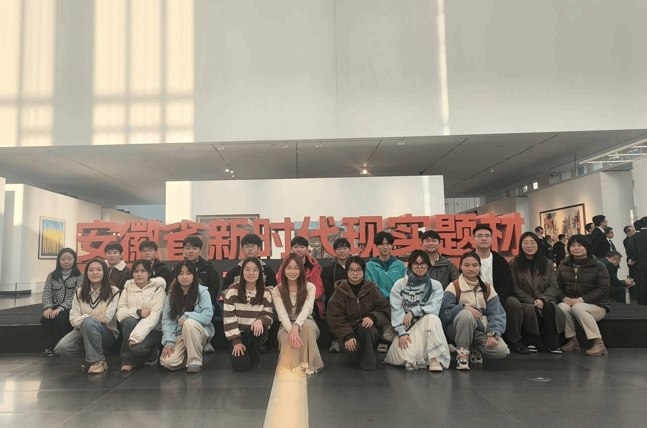 活动伊始,党员们首先步入“安徽省新时代现实题材美术作品展”。一幅幅作品以饱满的现实主义热情,生动描绘了安徽省在脱贫攻坚、科技创新、乡村振兴、生态保护等各领域取得的辉煌成就。一幅幅画作、一件件雕塑,聚焦时代脉搏,刻画人民风貌,展现了江淮大地日新月异的壮丽画卷。学生党员们在这些充满时代气息和生活温度的作品前驻足流连,从艺术的角度深切感受到了国家发展的强劲步伐和中国共产党带领人民创造的伟大奇迹,进一步坚定了“四个自信”。