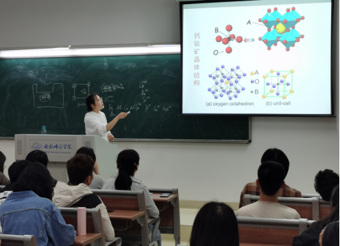 谢老师首先介绍了钙钛矿材料的结构、性能以及应用,并着重介绍了钙钛矿材料在催化、电磁存储等领域的应用情况及急需解决的技术难点。着重介绍了通过外延应力、氧含量、衬底取向去调控钙钛矿锰氧化物薄膜材料的电、磁性能。在互动提问环节,谢长征老师与学生进行了深入交流和讨论,使学生受益匪浅。