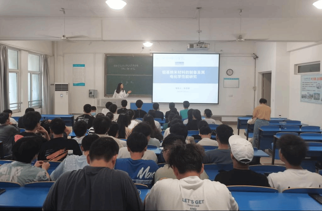 张雪倩老师报告的主题为“钼基纳米材料的制备及其电化学性能研究”,报告从国内外锂离子电池发展现状出发,就锂离子电池的未来研究趋势做了讲解,并在报告中详细介绍了锂离子电池负极材料存在的问题,分析了二硫化钼等材料存在的优势,介绍了中空纳米结构纳米材料的可控制备方法以及材料结构与电化学性能之间的构效关系,使学生对锂离子电池领域的研究进展有了深刻的认识。